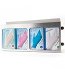De 4pak dispenser houder is gemaakt van roestvrij staal en is geschikt voor vier verpakkingen van wegwerphandschoenen. De dispenser houder is in diepte verstelbaar en kan worden gebruikt voor handschoenen verpakkingen met een diepte van 5-8 cm.