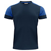 Moderne, aansluitende 2 kleurig t-shirt met geribde nek in vier lagen en elastan in de boord. Uitscheurbaar neklabel en afzonderlijk geweven maatlabel. Aan de binnenkant van de linker zij naad werd een zakje voorzien voor het innaaien van een was chip. De stof is ring gesponnen en na behandeld met een enzyme wash, waardoor het materiaal voorgekrompen is en zacht aanvoelt. Oeko-Tex 100 gecertificeerd.